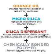 Strategically placed sipes on the inside ribs provide excellent grip and reduced road noise.