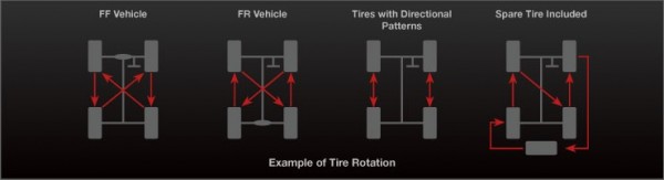 Note: The front-wheel tires of an FF vehicle wear two or three times faster than the rear-wheel tires because the front-wheel tires function for both driving and steering.